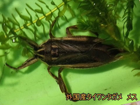 | タガメ 生体の販売、通信販売。タガメの幼生の販売、タガメの卵塊の販売 メンダーの販売 値段はなるべく安価設定、国産タガメではなく、外国からの輸入されたタガメになります。 タイワンタガメ 入荷しました ※最短到着で死着保証いたします |